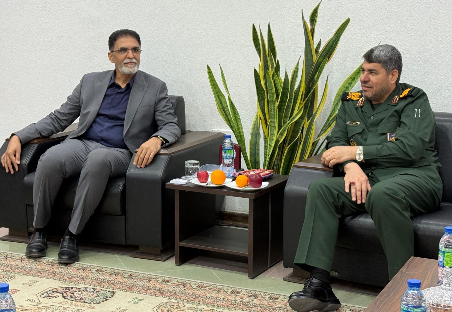 سردار حمید خرمدل فرمانده سپاه امام صادق(ع)استان بوشهر به اتفاق هیئت همراه با حضور در فرمانداری دشتستان با احمد دشتی فرماندار شهرستان دیدار و گفتگو کرد