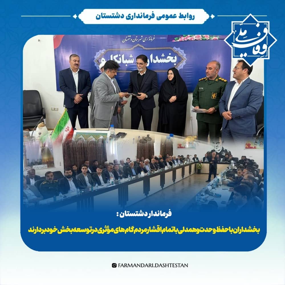 فرماندار دشتستان : بخشداران با حفظ وحدت و همدلی با تمام اقشار مردم گام‌های مؤثری در توسعه بخش خود بردارند