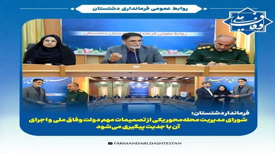 فرماندار دشتستان: شورای مدیریت محله‌محور یکی از تصمیمات مهم دولت وفاق ملی و اجرای آن با جدیت پیگیری می‌شود