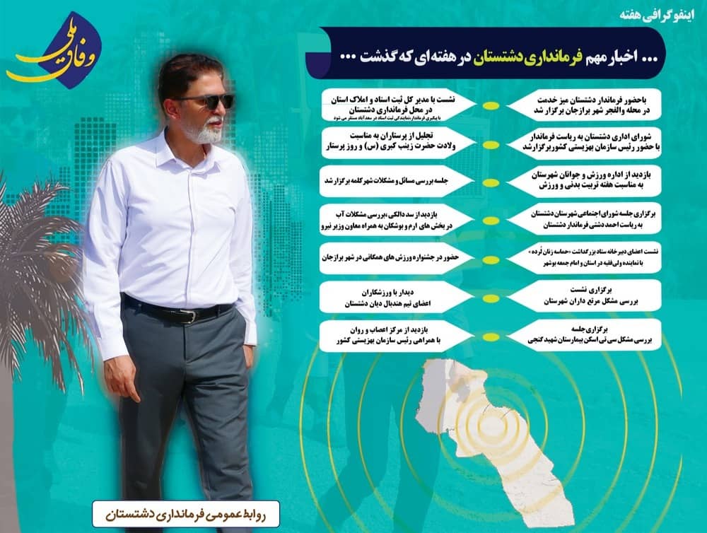 اخبار مهم فرمانداری دشتستان در هفته ای که گذشت 1404/08/09 - 22:59 - تعداد بازدید: 14 - تعداد بازدیدکننده: 14 - کد خبر : 45188 - گروه خبری : خبر فرماندار - تعداد نظرات : 0 اخبار مهم فرمانداری دشتستان در هفته ای که گذشت