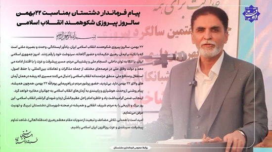 پیام فرماندار دشتستان بمناسبت 22بهمن سالروز پیروزی شکوهمند انقلاب اسلامی
